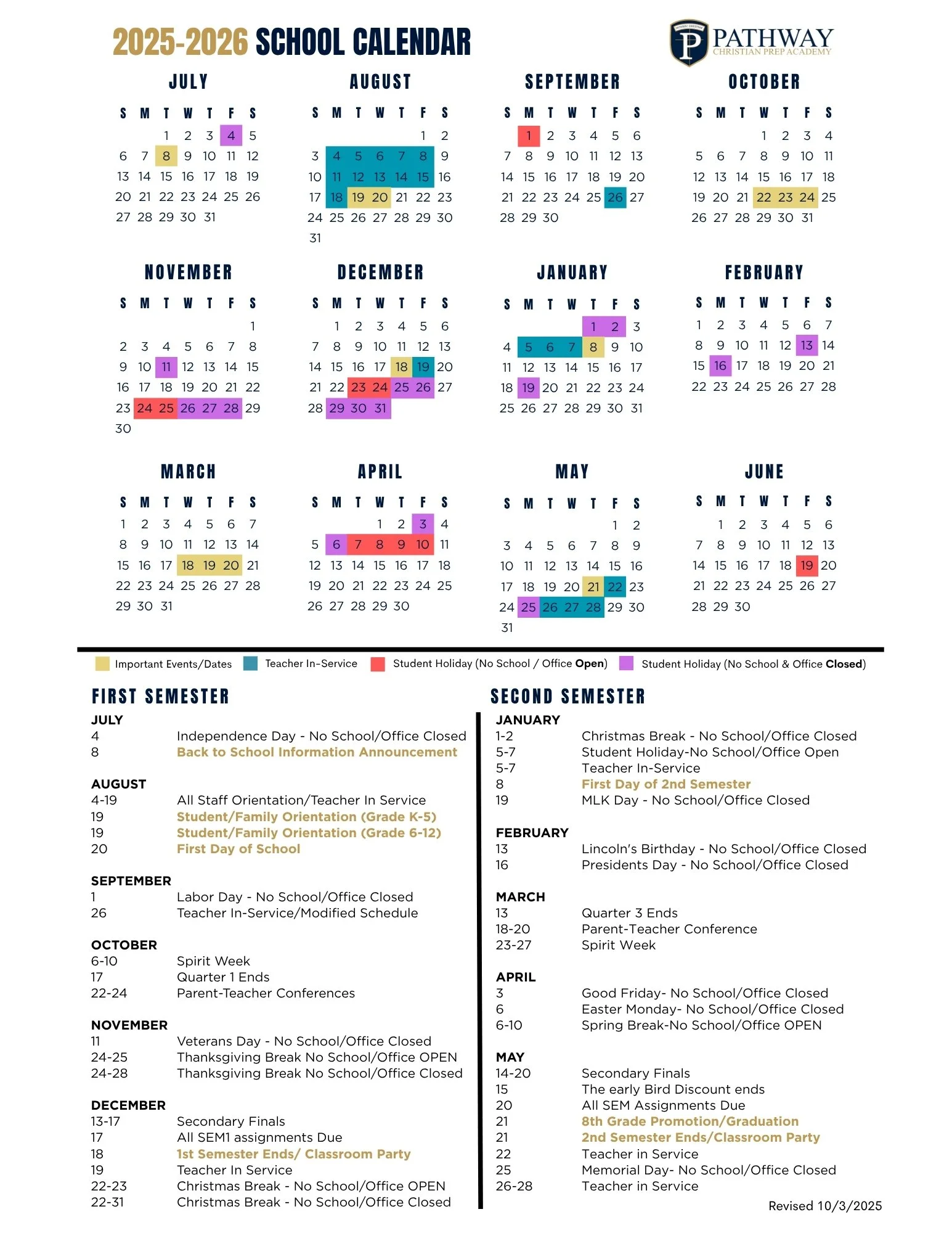 School Events and Important Dates